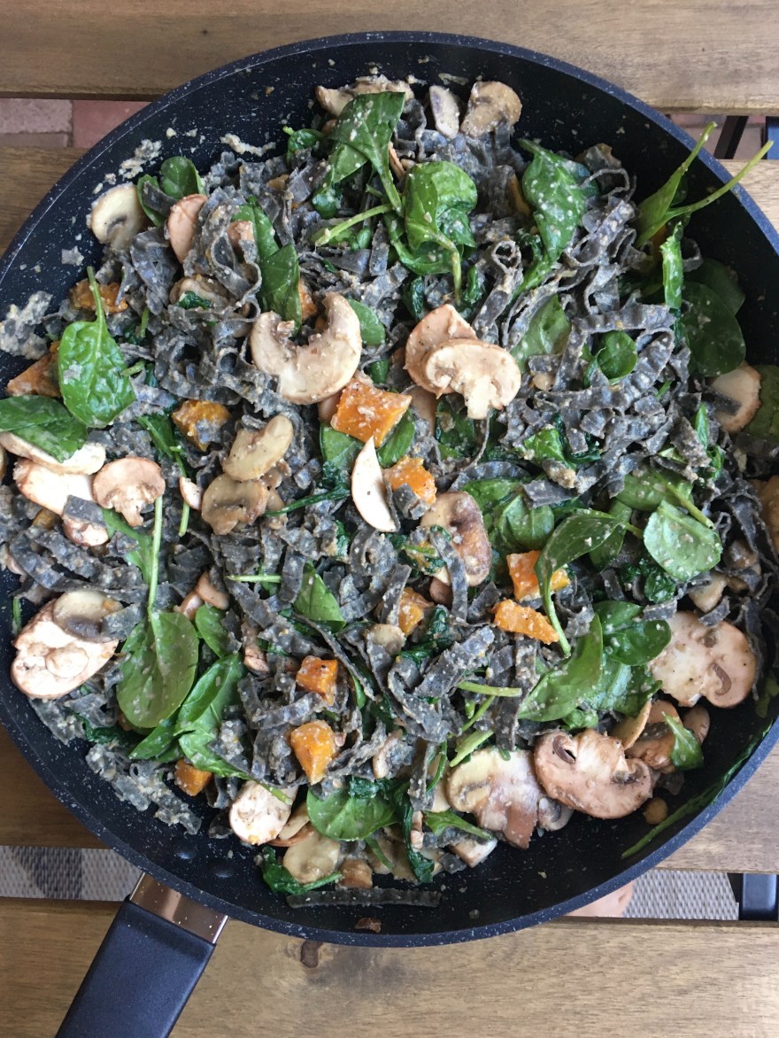 5. Add in roast pumpkin and mushrooms.